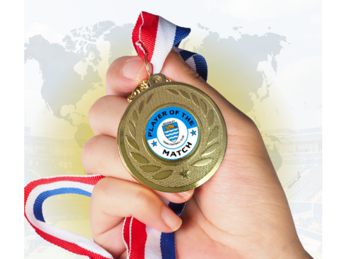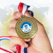 Includes a ribbon, in the colour of your choice and any sports picture or logo and wording on the front of the medal. Your logo is printed and covered in an acrylic dome.