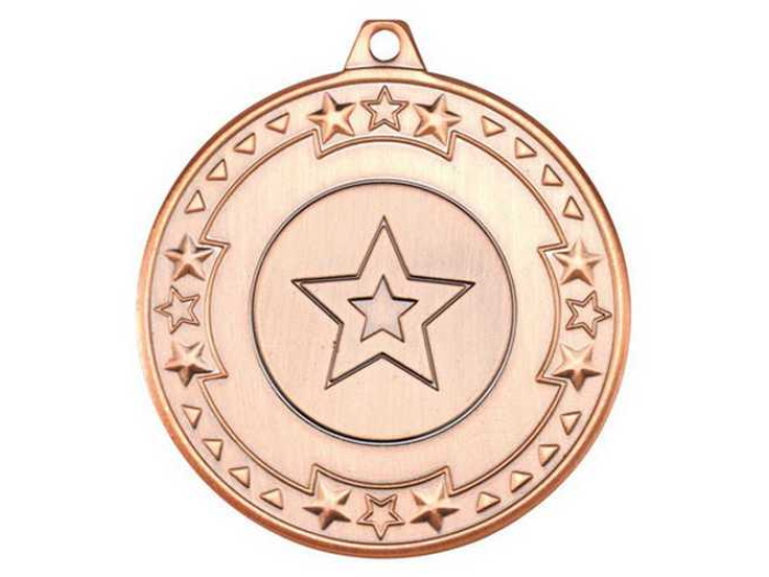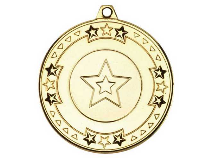 Tri-star 50mm metal medal in Gold, Silver or Bronze.